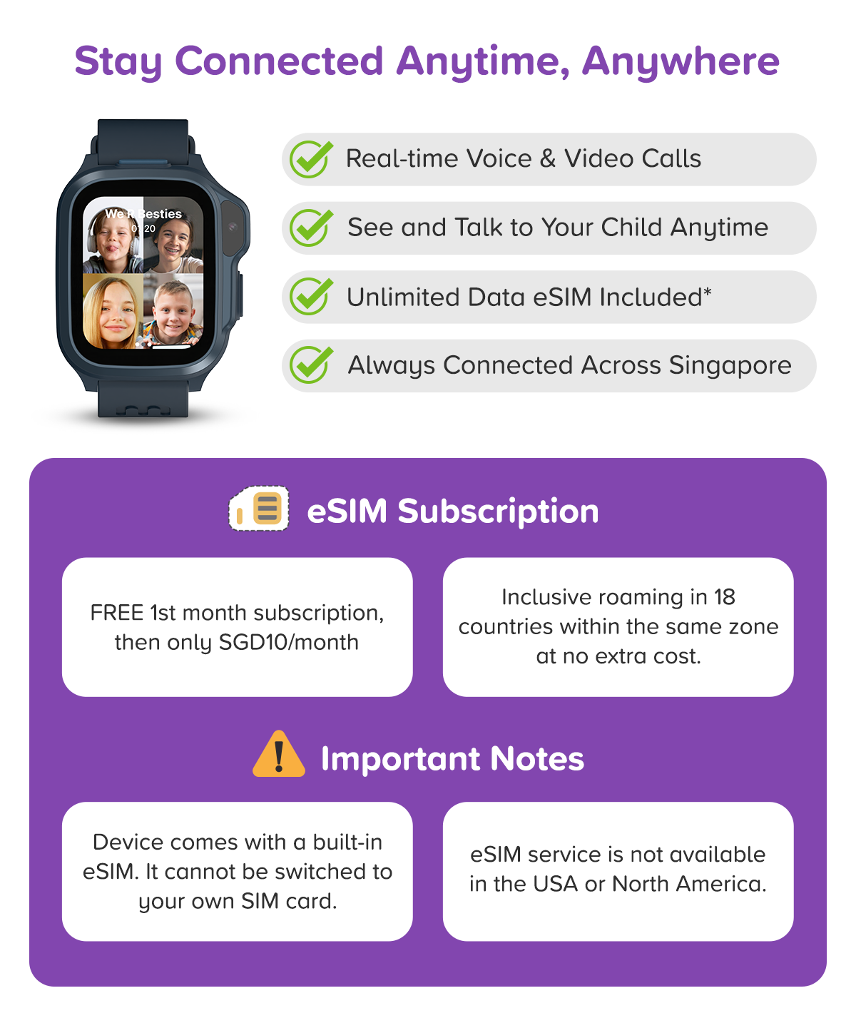 ► This model is only compatible with myFirst eSIM, you will not be able to change to other network carrier's eSIM.